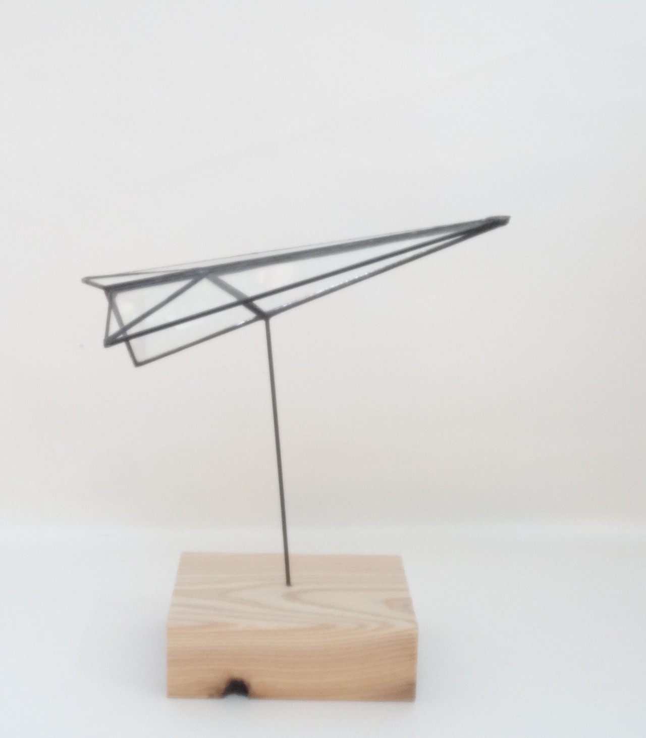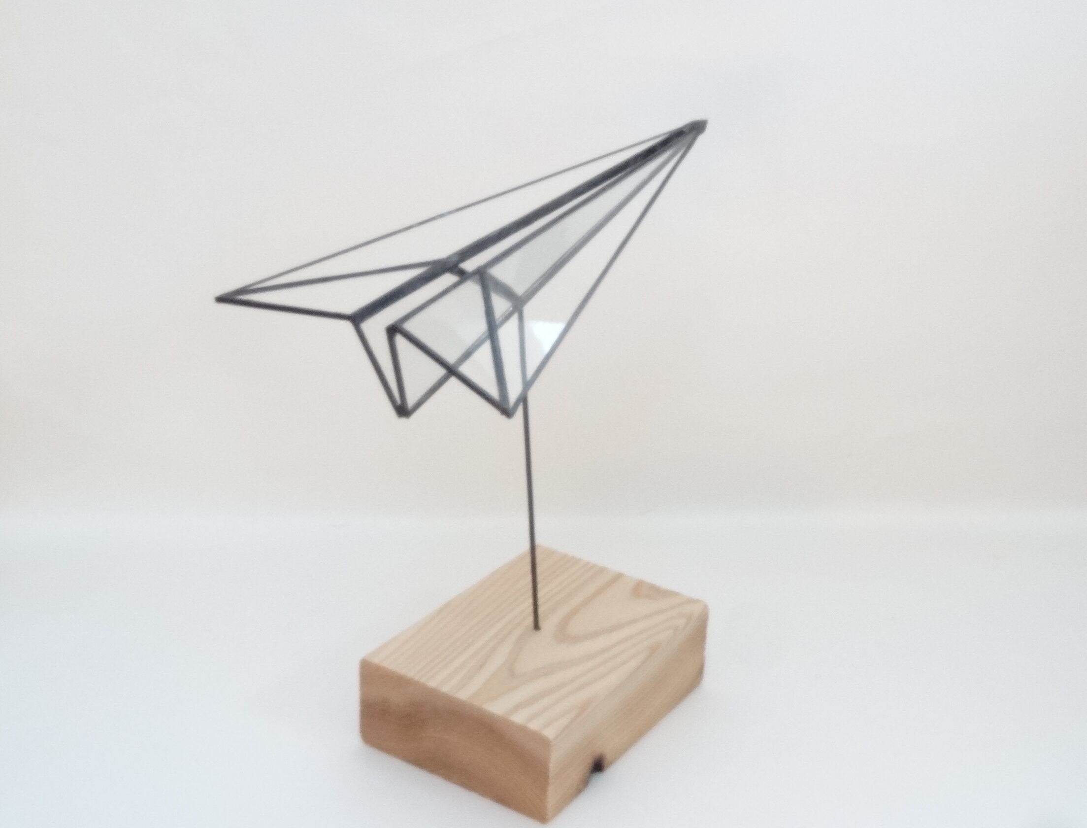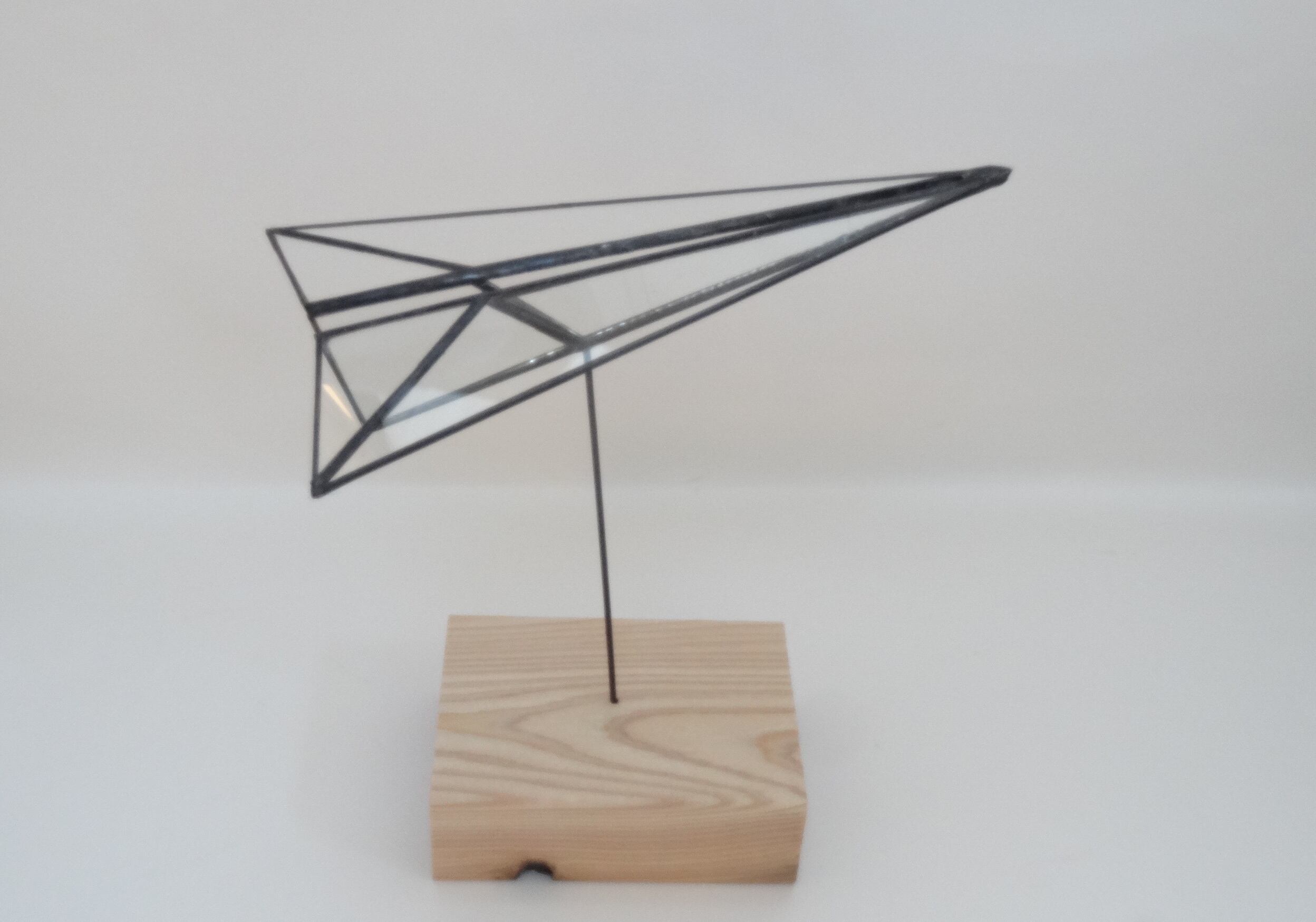 ガラスで作られた「紙ひこうき」のオブジェを飛ばせてみました。