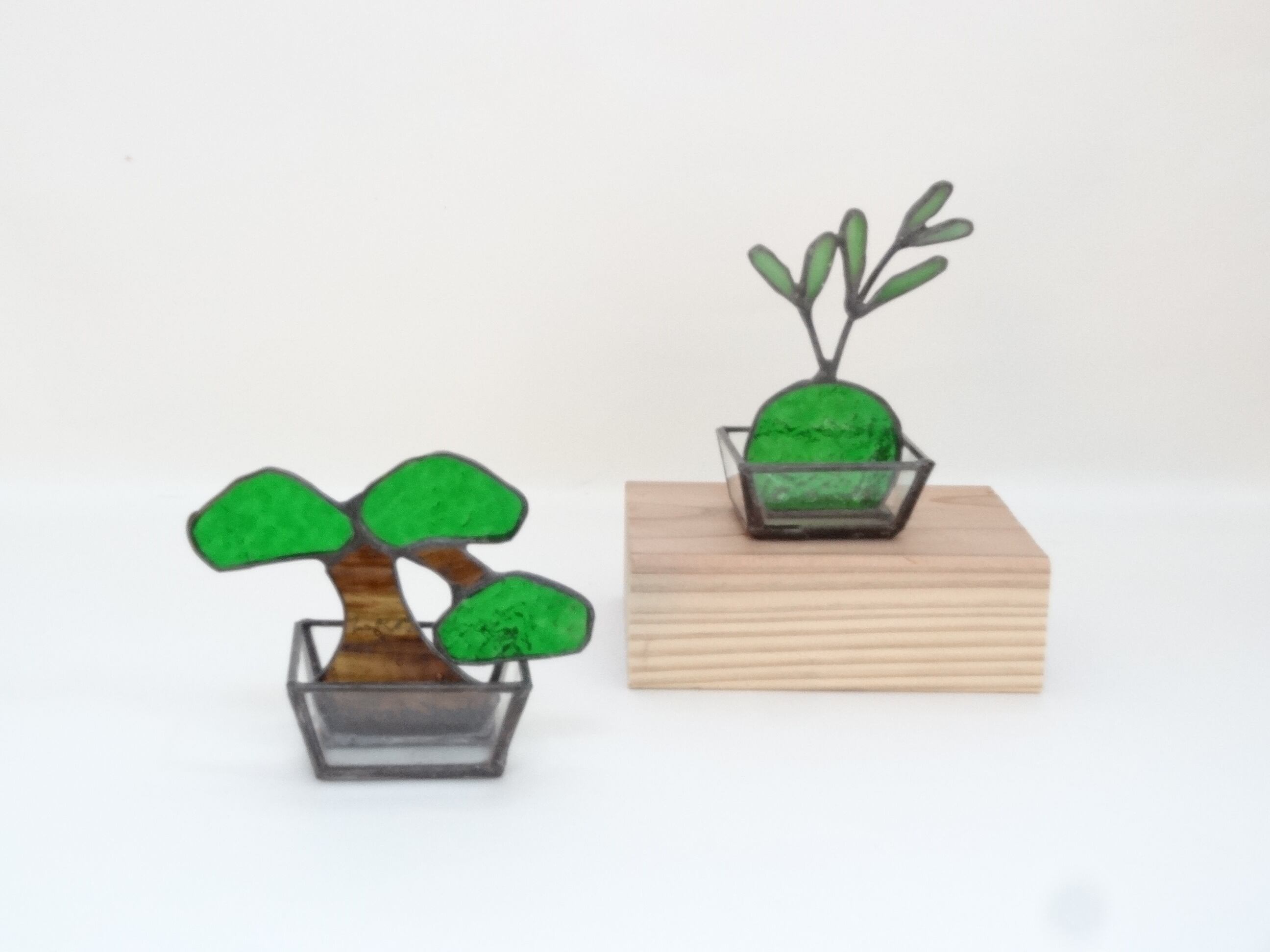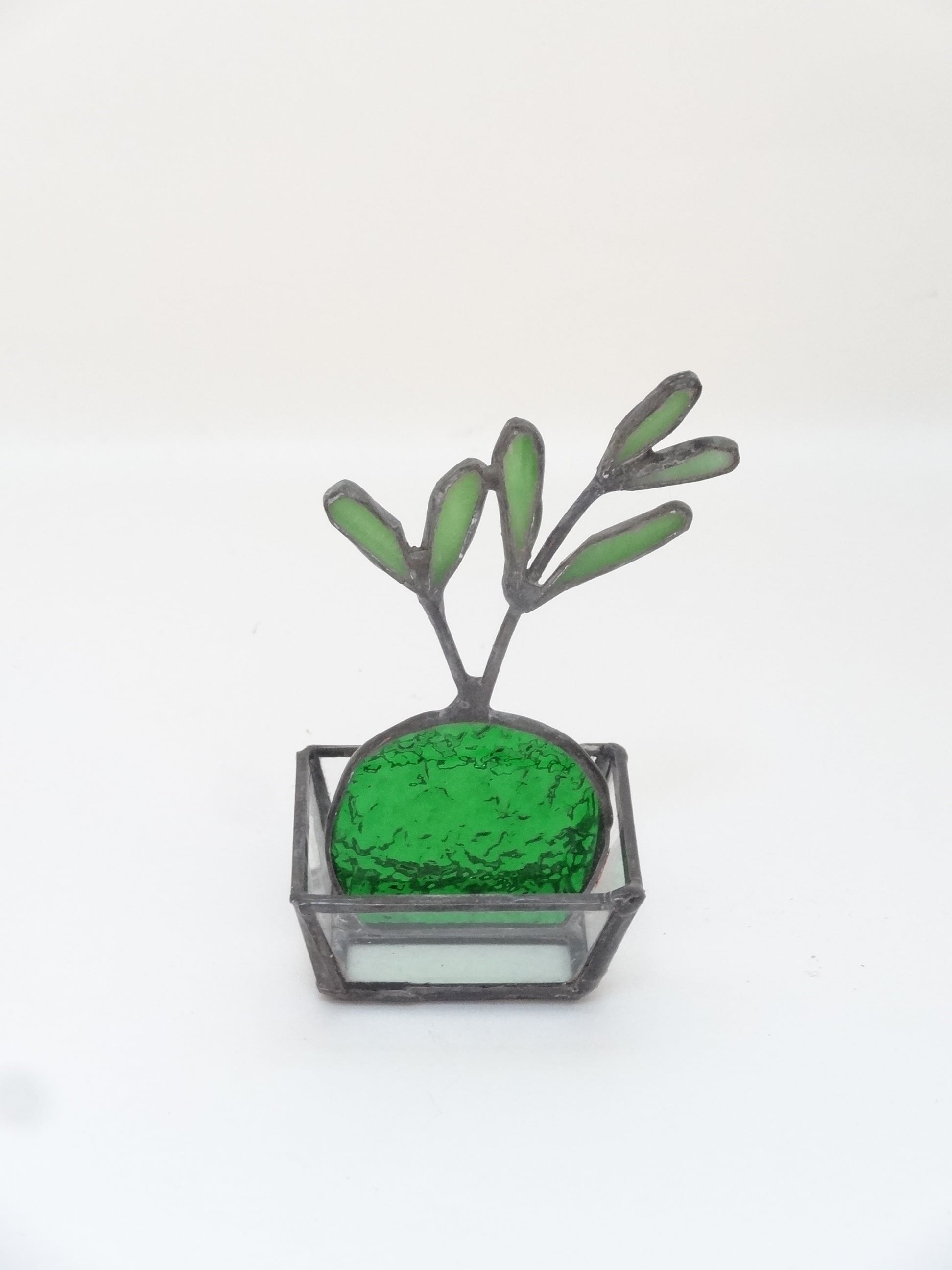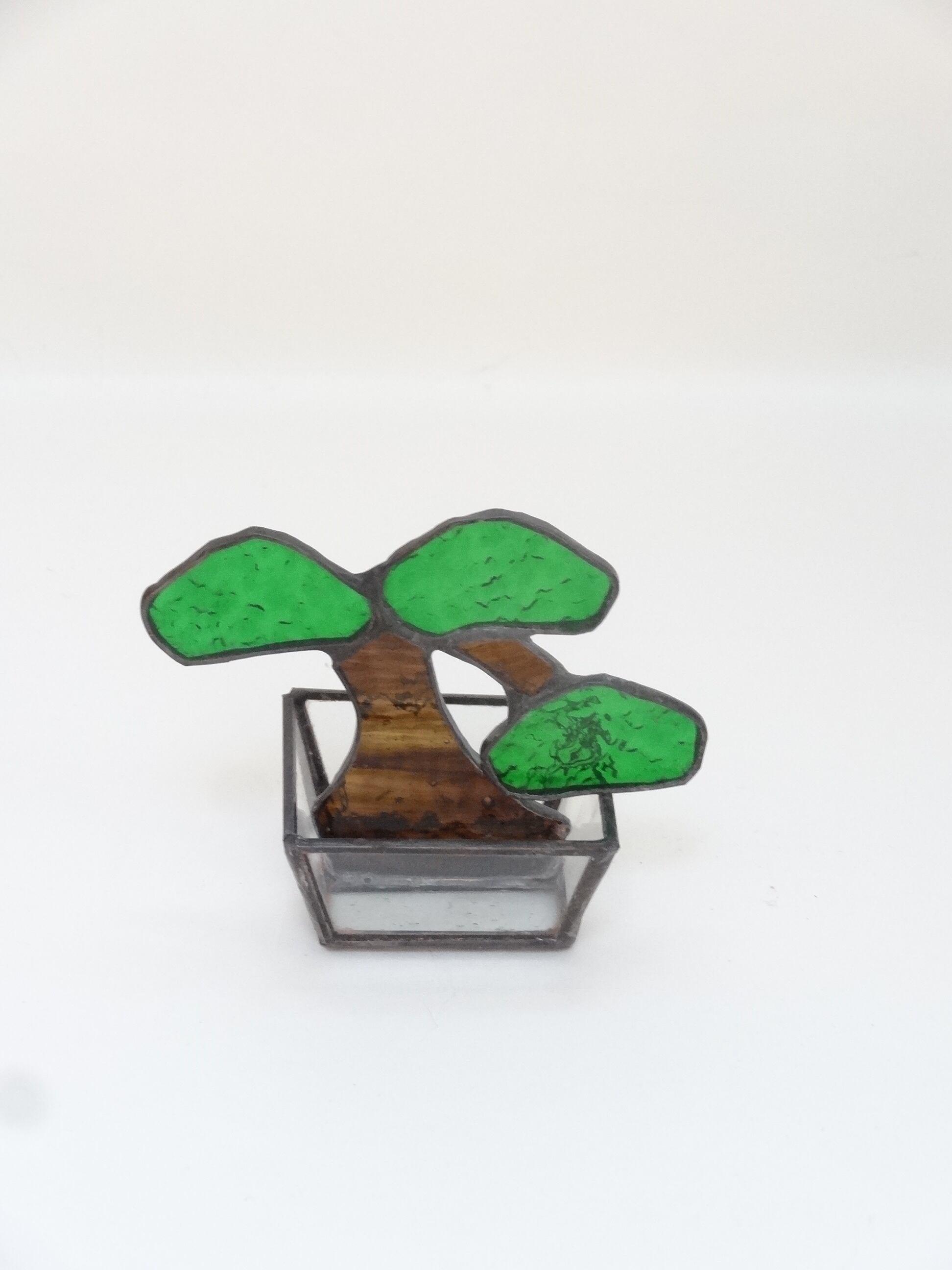 ステンドグラスの技法を使って造られた手のひらサイズの「BONSAI」です。